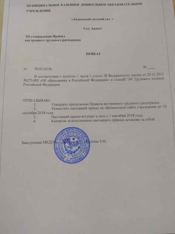 Правила внутреннего трудового распорядка